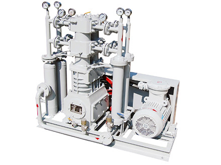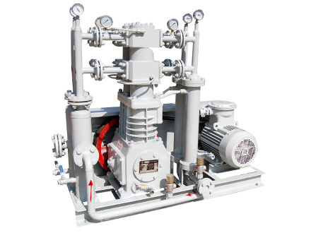 天然氣壓縮機(jī)是我公司自主研發(fā)的新型產(chǎn)品,往復(fù)活塞式結(jié)構(gòu) 。該機(jī)集壓縮機(jī)、冷卻器、電機(jī)、冷卻系統(tǒng)、共用底架等為一體。減少了占地面積,節(jié)省投資 ,方便操作,可為用戶最大限度的創(chuàng)造經(jīng)濟(jì)效益。該產(chǎn)品氣缸 、填料部件為無(wú)油潤(rùn)滑,保證了其工作介質(zhì)的純度。曲軸、連桿、十字頭部件為壓力潤(rùn)滑,以保證潤(rùn)滑的可靠性。