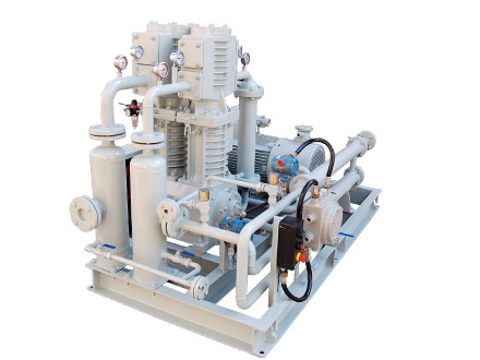 氫氣壓縮機壓縮機是我公司新型產(chǎn)品,它集壓縮機、氣液分離器、安全閥冷卻器、電動機等為一體,成一完整的機組。具有功能多、體積小、重量輕、功率小、運行平穩(wěn)可靠等特點,并有良好的安全性能。它為輸送氫氣,可為用戶最大限度地創(chuàng)造經(jīng)濟效益。由于采用獨特的無油潤滑設(shè)計,氣缸內(nèi)無需用油潤滑,因而不會對介質(zhì)造成污染,使被輸送物質(zhì)保持純凈。本機設(shè)計成機組型式,許多管線上的附件都安裝在機組上,省卻了氣液分離器、穩(wěn)壓罐、安全閥、進氣過濾器等,減小了機房的面積,減少了操作維護工作量,節(jié)省了投資。